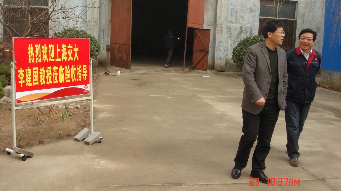 上海交大李建國教授來我公司驗收指導(dǎo)工作[2013/10/29]2012年3月23日,上海交通大學(xué)材料學(xué)院李建國教授來我公司考察指導(dǎo)工作。階段驗收指導(dǎo)我公司承擔(dān)的大規(guī)格鑄錠973攻關(guān)項目部分設(shè)備的研制工作進展情況。賈總向李教授匯報了整體設(shè)備研制情況及全部竣工的節(jié)點,并承諾保質(zhì)保量按期完成項目。李教授對公司的敬業(yè)精神、細致的工作態(tài)度表示了極大的認可,并對下一階段的研制任務(wù)提出要點要求。最后李教授應(yīng)賈總邀請欣然為我公司題詞勉勵!