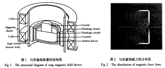單晶爐的勾型磁場(chǎng)結(jié)構(gòu)與分析過(guò)程[2014/6/30] 勾形磁場(chǎng)是由空心方銅管密繞而成的兩個(gè)完全相同的獨(dú)立圓形直流線圈和外磁屏蔽體構(gòu)成,將其安裝在單晶爐爐腔外部并與之同心,其結(jié)構(gòu)如圖1所示。給兩個(gè)線圈通以方向相反大小相同直流電流時(shí),兩個(gè)線圈內(nèi)部相鄰的磁極同為Ⅳ極,其內(nèi)部磁場(chǎng)是由上下兩個(gè)線圈產(chǎn)生磁場(chǎng)合成而成,由于它們徑向分量方向相同,其徑向分量為兩個(gè)徑向量之合,而軸向分量的方向相反,其分量為兩個(gè)徑向量之差。這樣以來(lái),線圈內(nèi)將形成一個(gè)以軸和上下對(duì)稱兼有徑向和縱向分量的圓柱非均勻發(fā)散型磁場(chǎng)。磁場(chǎng)剖面分布如圖2所示。磁場(chǎng)強(qiáng)度可通過(guò)調(diào)整電流大小改變。線圈外部的磁場(chǎng)通過(guò)高導(dǎo)磁率的磁屏蔽體被屏蔽,其目的是減少外部磁回路的磁阻降低磁損耗,提高線圈內(nèi)部磁場(chǎng)強(qiáng)度;同時(shí),還可避免磁場(chǎng)裝置對(duì)外部環(huán)境的電磁污染。由于爐腔體使用的奧氏體不銹鋼、內(nèi)部的石墨加熱器和坩堝均為非磁性材料,所以,在研究磁場(chǎng)時(shí),可以將線圈視為空心螺旋管線圈。 有限元的分析過(guò)程 在分析磁場(chǎng)強(qiáng)度和分布之前,首先要知道何種磁場(chǎng)分布及強(qiáng)度可有效地抑制坩堝內(nèi)熔融體的熱對(duì)流。根據(jù)已有研究結(jié)果表明:在直拉法拉制單晶過(guò)程中,對(duì)熔融體的熱對(duì)流起主要抑制作用的磁場(chǎng)是兩個(gè)線圈之間中心很窄區(qū)域磁場(chǎng)的徑向分量Bx,。將這個(gè)區(qū)域施加在熔融體不同的軸向位置所起的抑制作用的強(qiáng)度不同,只有施加于熔融體液面頂部可最大限度抑制其流動(dòng),雖然這種作用在局部,但可極大地降低坩堝內(nèi)整體熔融體的對(duì)流強(qiáng)度。在實(shí)際拉制單晶過(guò)程中磁場(chǎng)徑向分量曰,最大面始終保持在熔體液面下10mm處已證明。從以上結(jié)論可知:在設(shè)計(jì)磁場(chǎng)參數(shù)時(shí),盡可能使磁場(chǎng)的最強(qiáng)區(qū)域的徑向分量曰,最大,要使徑向分量B;達(dá)到最大就必須分析影響磁場(chǎng)強(qiáng)度B,大小的主要參數(shù),如線圈匝數(shù)Ⅳ和直流電流I線圈之間的距離D等。 我們采用有限元法對(duì)磁場(chǎng)進(jìn)行模擬分析。該方法是對(duì)分析對(duì)象通過(guò)劃分網(wǎng)格,求解出有限個(gè)單元點(diǎn)的數(shù)值近似得到真實(shí)環(huán)境的無(wú)限個(gè)未知量。其求解步驟為:首先,根據(jù)磁場(chǎng)的結(jié)構(gòu)尺寸建立磁屏蔽和磁場(chǎng)內(nèi)部空間的軸對(duì)稱二維幾何模型,并劃分線圈內(nèi)部和磁屏蔽體網(wǎng)格生成有限個(gè)單元模型。其次,根據(jù)材料特性分別為磁屏蔽體和線圈內(nèi)部模型賦予B-H曲線數(shù)值、空氣特性。再次,依據(jù)線圈的形狀和匝數(shù),施加外部載荷和邊界條件。求解出模型中有限個(gè)單元點(diǎn)的磁場(chǎng)強(qiáng)度數(shù)值。最后,通過(guò)后處理計(jì)算得到磁場(chǎng)分布曲線。根據(jù)TDK-70型單晶爐的具體尺寸采用表1所給出的幾何尺寸進(jìn)行磁場(chǎng)的強(qiáng)度和分布模擬分析。由于勾形磁場(chǎng)為軸對(duì)稱分布且以兩個(gè)線圈之間的中心面為上下對(duì)稱,所以在模擬分析時(shí)取線圈軸向剖面(x-y平面)的一個(gè)象限可反映整個(gè)磁場(chǎng)的分布情況。在建立有限元模型時(shí),分別取兩個(gè)線圈之間中心的徑向和線圈軸線為x、y坐標(biāo)軸。 下一篇:了解真空熱處理“魅力”